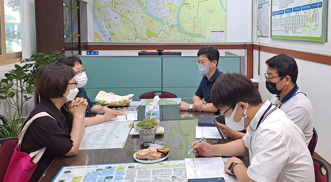 사진/ 5일 평동행정복지센터에서 건강복지팀 방문 간담회를 하고 있다.(사진제공=수원시)