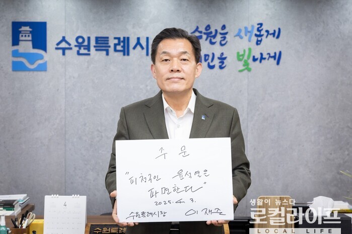 [수원=로컬라이프] 송준형 기자 = 이재준 수원특례시장이 ‘윤석열 파면 손글씨 릴레이’에 참여했다.