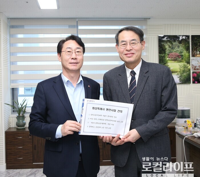 [화성=로컬라이프] 송준형 기자 = 정명근 화성특례시장은 강희업 국토부 대도시권광역교통위원장을 만나 지역 현안 사업에 대한 협조를 당부했다.