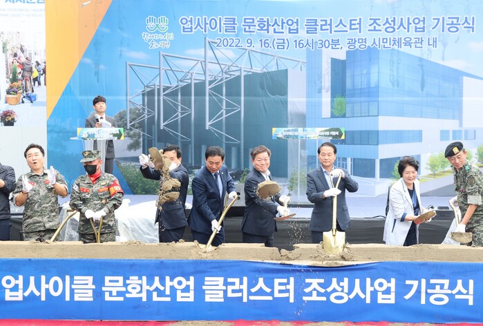 시는 16일 광명시민체육관 내 사업부지에서 박승원 광명시장, 시의원 및 관계자 등 20여 명이 참석한 가운데 업사이클 문화산업 클러스터 조성공사 기공식을 가졌다.