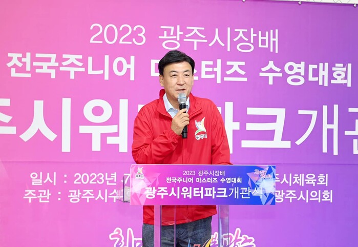 방 시장은 이날 <광주시 워터파크 개관식‧광주시장배 전국주니어 마스터즈 수영대회> 등 시민 여러분과 함께했다고 밝혔다.