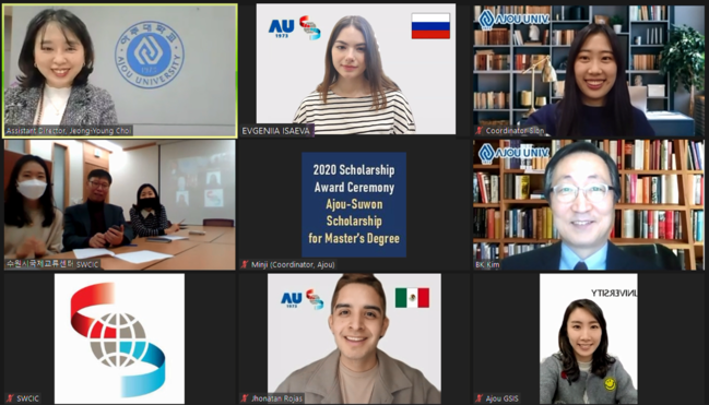 사진/온라인으로 열린 ‘아주-수원 석사과정’ 장학금 수여식.(수원시청 제공)