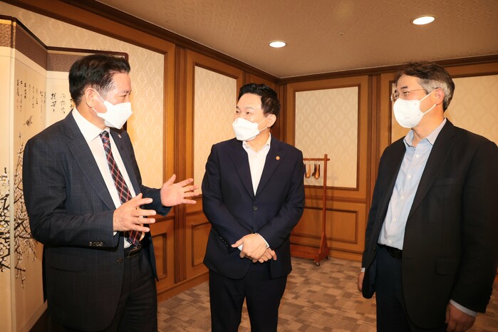 최대호 안양시장이 원희룡 국토교통부 장관과 5개 신도시의 시장이 모인 자리에서 1기 신도시 재건축 활성화를 위한 특별법 조속 제정과 주택법 개정 등을 건의했다.