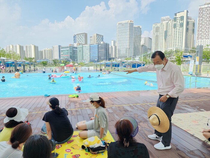 [로컬라이프] 송준형 기자 = 이현재 하남시장은 15일, 물놀이장 오픈해서 현장 점검 중이라고 밝혔다.