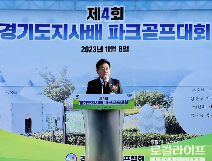 | ▲ 전진선 양평군수가 ‘제4회 경기도지사배 파크골프대회’에 참석해 축사를 하고 있다. (사진출처=전진선 페이스북) |