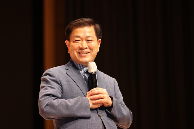 사진/박승원 광명시장은 6월 4일 광명극장에서 대한노인회 광명시지회 노인대학 학생들을 대상으로 강의를 했다.(사진제공=광명시)