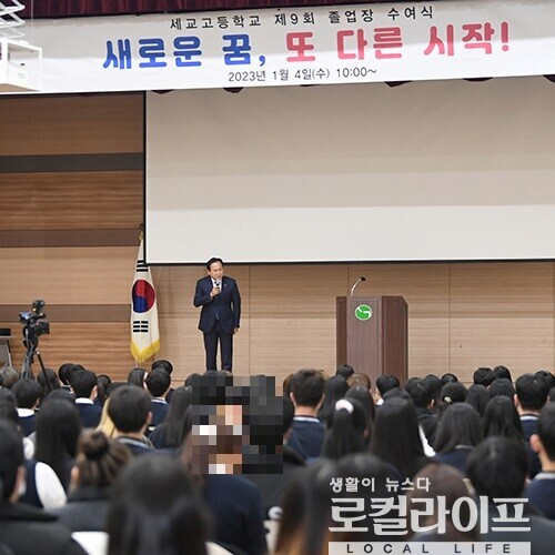 [오산=로컬라이프] 송준형 기자 = 이권재 오산시장이 졸업을 맞은 학생들을 격려했다.