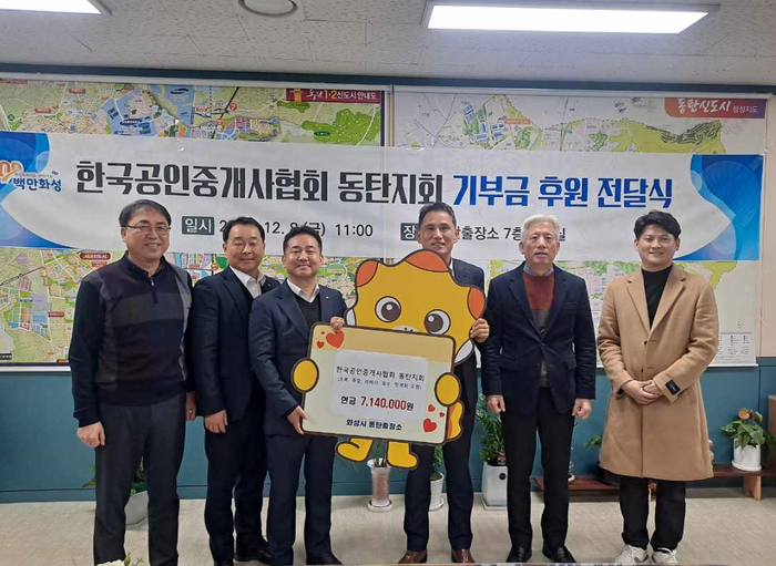 한국공인중개사협회 동탄지회(초록, 중앙, 리베라, 호수, 청계회 포함)가 8일 화성시 동탄출장소를 방문해 어려운 이웃을 돕기 위한 기부금 714만원을 기탁했다.
