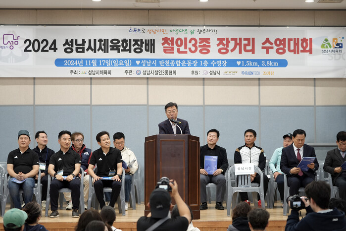 신상진 성남시장은 17일 오전 9시 30분 탄천종합운동장 체육회관 이벤트홀에서 열린 ‘2024년 성남시체육회장배 철인3종 장거리수영대회’ 개회식에 참석했다.