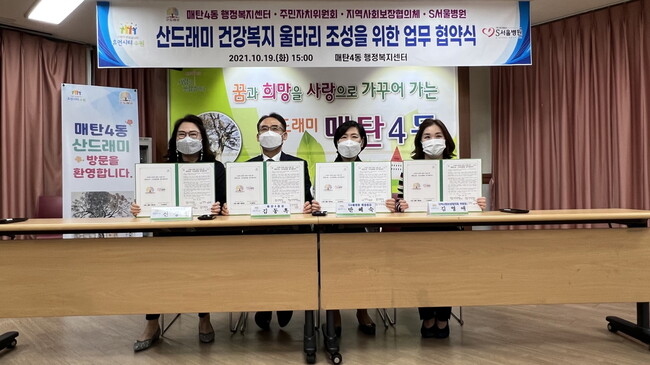 수원시 영통구 매탄4동과 S서울병원(매탄동)이 업무 협약을 체결하고, ‘산드래미 건강복지 울타리’ 조성을 위해 협력하기로 했다.
