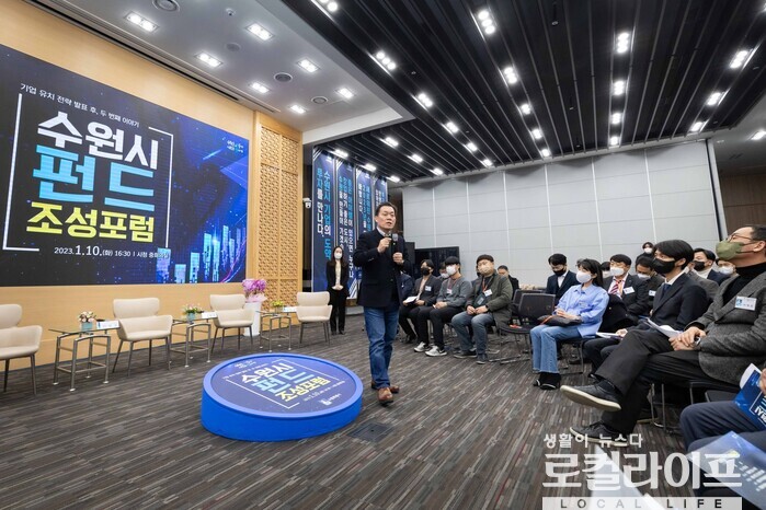 | ▲ 이재준 수원특례시장이 지난 1월 10일, ‘수원시 펀드 조성 포럼’에서 발언하고 있다. (사진출처=이재준 페이스북) |