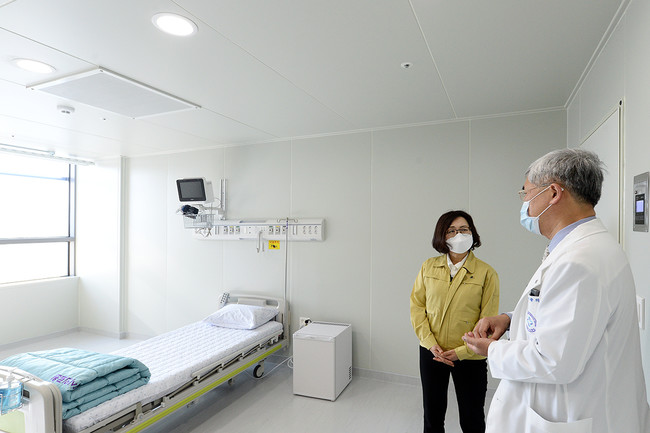 한편 성남시의료원은 2월 23일 감염병 전담병원으로 지정된 이후 3월 중순으로 예정되어있던 정식 개원까지 미룬 채 코로나19 환자 치료에 전력을 다하고 있으며, 현재 이동형음압기 총 28기, 음압병상 총 67실을 확보 운영 중이다.