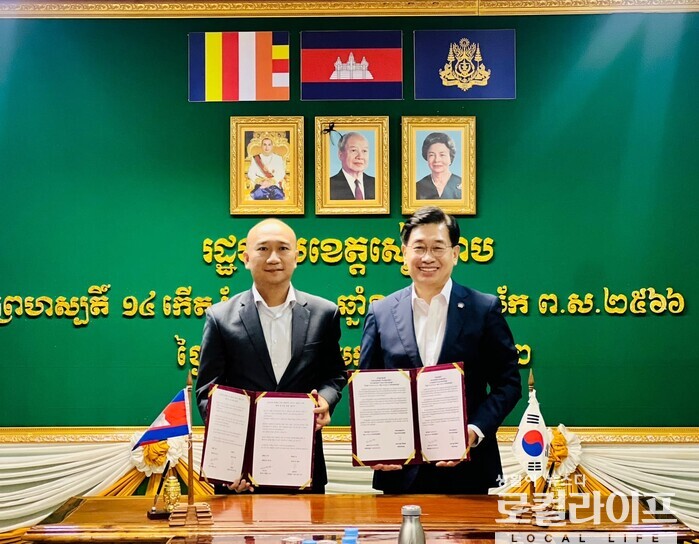 [양평=로컬라이프] 송준형 기자 = 캄보디아를 방문 중인 전진선 양평군수가 시엠립 주정부와 캄보디아 근로자들이 양평군 농업현장에서 근로할 수 있도록 하는 것을 골자로 하는 MOU를 체결했다.