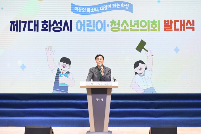 시청 대강당에서 열린 발대식에는 정명근 화성시장과 김경희 화성시의회 의장, 시의원, 제6·7대 아동·청소년의원 및 학부모 등 200여 명이 참석했다.