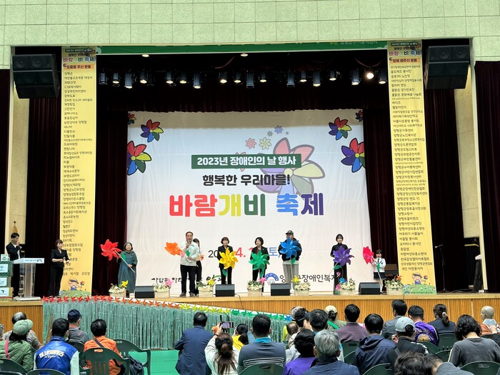 양평군장애인복지관(관장 김성민)은 지난 15일, 2023년 장애인의 날을 기념해 “행복한 우리 마을, 바람개비 페스티벌”이라는 주제로 물 맑은 양평체육관에서 기념행사를 개최했다.