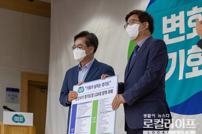 [경기=로컬라이프] 송준형 기자 = 민선8기 경기도지사직 인수위원회 염태영·반호영 공동 위원장이 기자 간담회를 갖고 인수위 활동에 대해 설명했다.