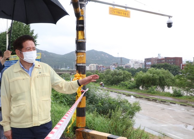 [로컬라이프] 최대호 안양시장이 3일 집중호우에 따른 긴급 현장점검을 벌였다. 당초 이번 주 휴가계획이었지만 집중호우가 중부지방을 강타하고 태풍이 올라온다는 일기예보를 접해 예정에 없던 현장점검에 나선 것이다.