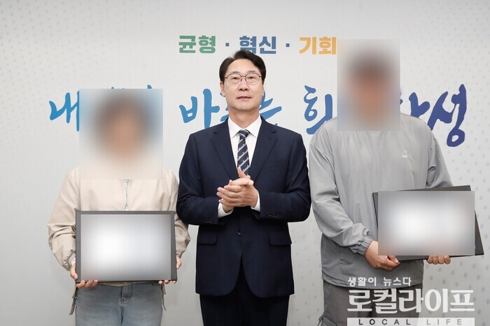 [화성=로컬라이프] 송준형 기자 = 정명근 화성특례시장이 보이스피싱 수거책 검거를 도운 시민들에게 표창했다.