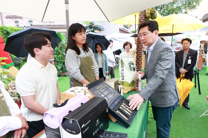 협약에 앞서 행사장을 찾은 이 시장은 '용인의 소반' 제품들을 일일이 살펴보면서 맛을 보고 시음을 한 다음 "제품들의 맛도 좋고, 병이나 브랜드 디자인, 포장도 좋다"면서 "구매하는 소비자들의 큰 사랑을 받을 것으로 보이는 만큼 시와 농업기술센터가 더욱 더 적극적인 지원을 할 것"이라고 말했다.