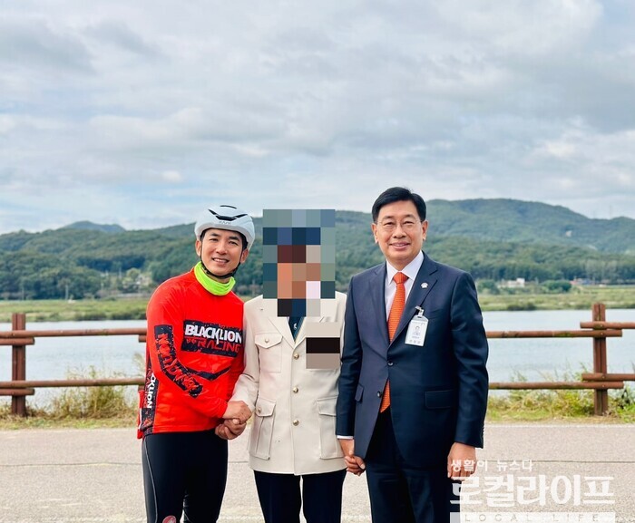 | ▲ 전진선 양평군수(오른쪽)가 박민석 보훈부 장관(왼쪽), 참전용사(가운데)와 함께 기념촬영을 하고 있다. (사진출처=전진선 페이스북) |