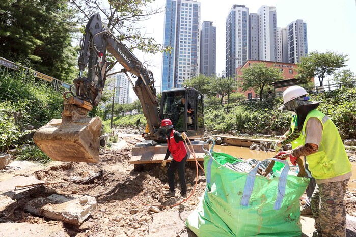 이와 함께 3개구 구청은 지난 13일부터 관할 하천을 로드 체킹해 소규모 피해가 생긴 하천 시설물을 보수하고 쓰레기를 수거하고 있다.