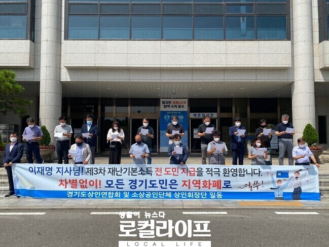 [경기=로컬라이프] 송준형 기자 = 경기도상인연합회와 소상공인단체 상인회장단이 합동으로 지난 13일 이재명 경기지사가 발표한 ‘전 도민 제3차 재난기본소득 지급 결정’에 지지 입장을 밝혔다.