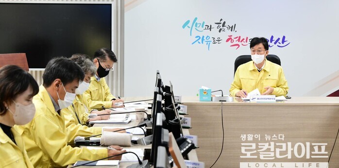 | ▲ 이민근 안산시장이 재난상황점검회의를 주재하고 있다. (사진출처=이민근 페이스북) |
