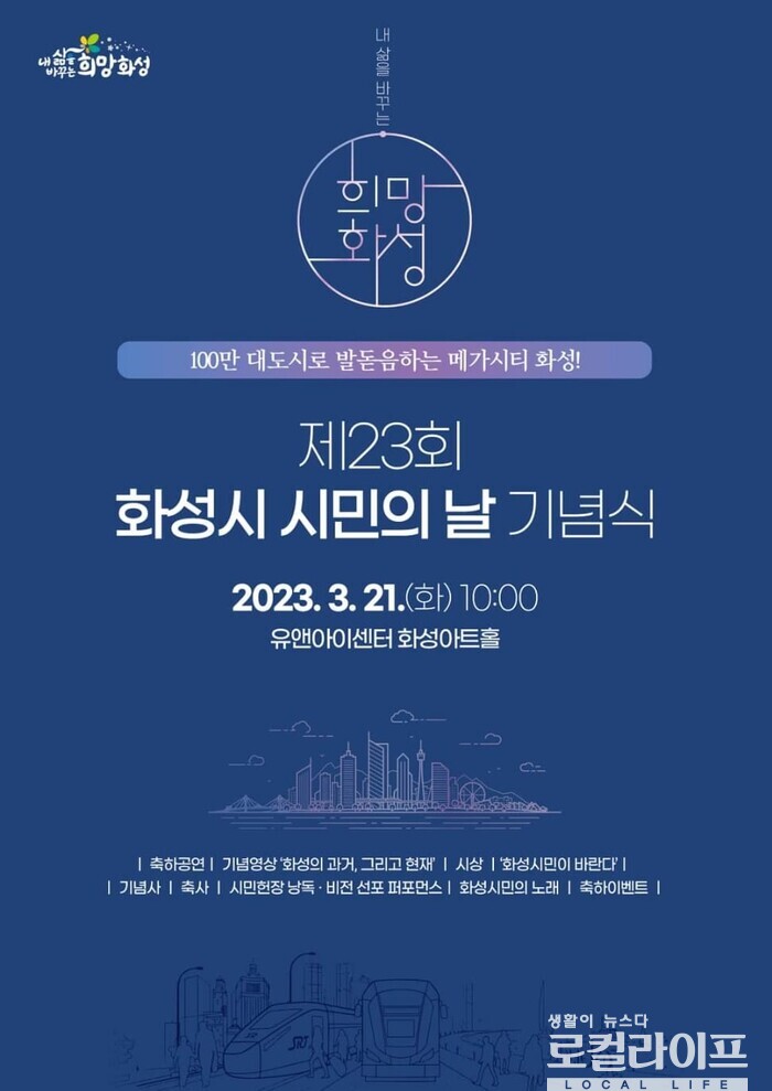 [화성=로컬라이프] 송준형 기자 = 화성시가 오는 21일, ‘제23회 화성시민의 날’을 맞아 기념식을 개최한다.