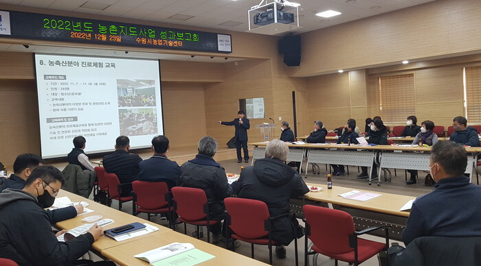 수원시농업기술센터는 23일 센터 대강당에서 ‘2022년도 농촌지도사업 성과보고회’를 열고, 올해 주요 성과와 우수사례를 소개했다.
