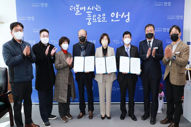 [로컬라이프] 송준형 기자 = 안성시와 (사)한국외식업중앙회 안성시지부(지부장 김오용), 안성마춤농협(대표 도상목)은 1월 4일, 안성농산물 소비 촉진 운동을 위한 협약을 체결했다.