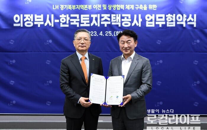아울러 “다른 시군에서도 LH경기북부본부를 유치하려는 움직임이 있어 오늘(25일) 협약을 체결하기 전까지 내심 불안하기도 했다”며 “이렇게 어려운 결정을 해주신 LH 이한준 사장과 임직원 여러분께 의정부 시민을 대표하여 감사 말씀을 올린다”고 밝혔다.