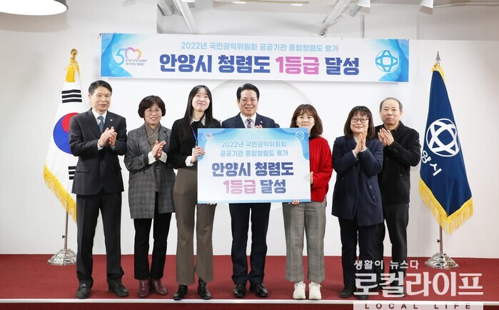 [안양=로컬라이프] 송준형 기자 = 안양시가 ‘2022년 국민권익위원회 공공기관 종합청렴도 평가’에서 1등급을 획득했다.