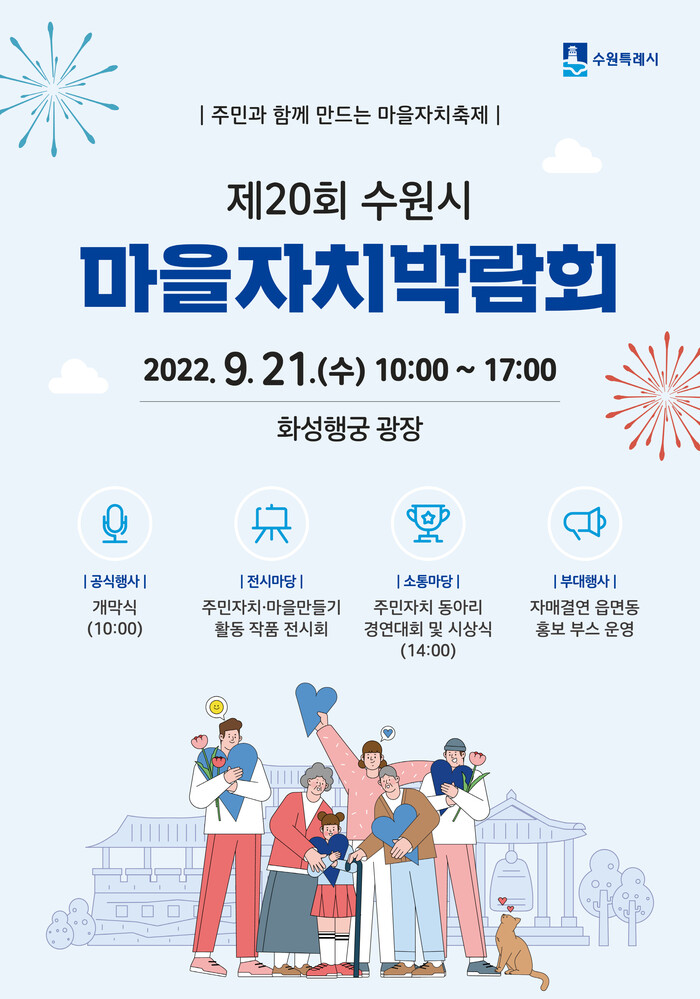 수원시가 9월 21일 오전 10시부터 화성행궁 광장에서 ‘제20회 수원시 마을자치박람회’를 개최한다.