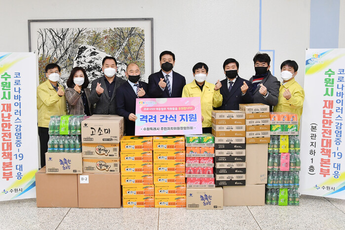 수원시 주민자치위원장협의회가 “코로나19 대응을 위해 애쓰는 공직자들에게 전달해 달라”며 수원시에 간식을 전달했다.