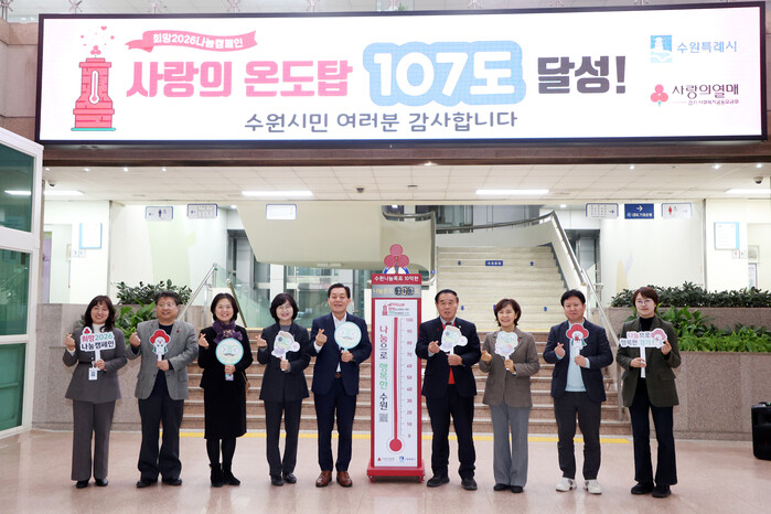 수원특례시의회(의장 이재식)는 2월 5일, 시청 본관 1층 로비에서 열린 ‘사랑의 온도탑’ 폐막식에 참석해 시민과 함께한 나눔의 의미를 되새겼다.