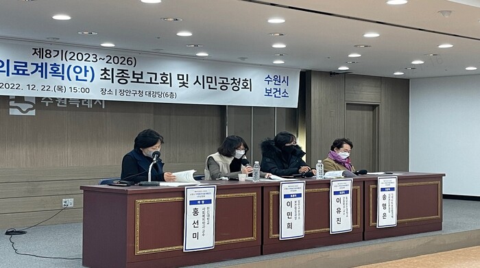 수원시가 22일 장안구청 대회의실에서 ‘수원시 제8기(2023~2026년) 지역보건의료계획(안) 최종보고회·시민공청회’를 개최했다.