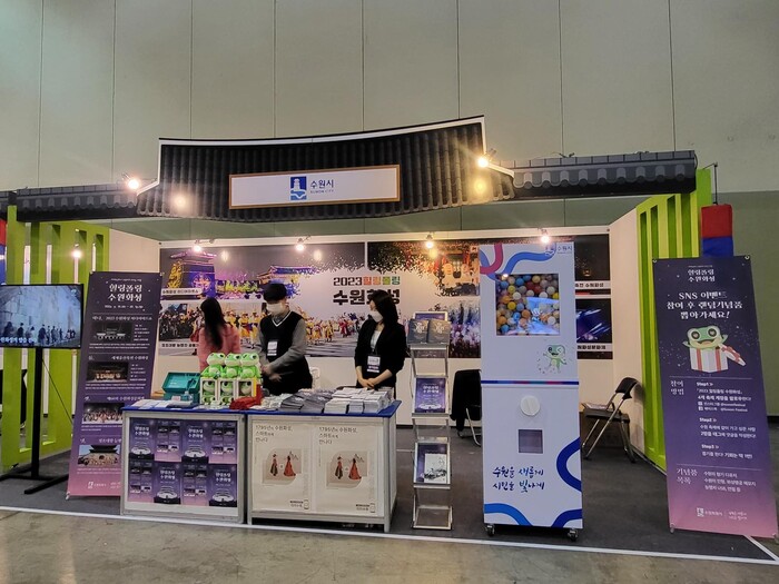 수원시는 홍보 부스를 운영하며 ‘2023 힐링폴링 수원화성’과 수원화성 등 수원시 관광자원을 알렸다.