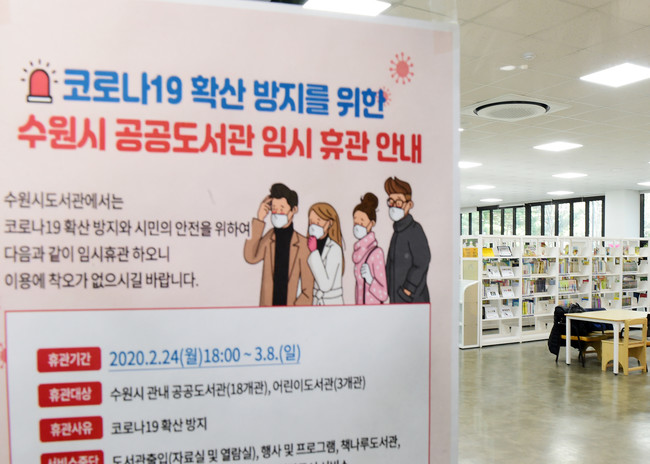 수원시, 코로나19 확산 방지 위해 '공공도서관·박물관·미술관' 3월 8일까지 휴관