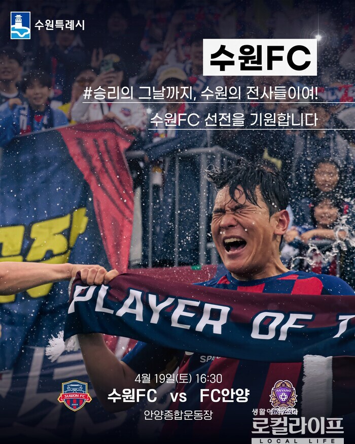 이어 “김천과의 8라운드 경기에서 역전의 재역전을 거듭한 끝에, 추가 시간 터진 이현용 선수의 ‘극장 결승골’로 3:2 짜릿한 승리를 거뒀다”며 “이제부터 수원FC의 진짜 이야기가 시작된다. 내일은 'FC안양'과의 한판 승부 "1호선 더비" 1차전이 예정되어 있다. 같은 시민구단 간 자존심을 건 더비매치이자, 수원FC의 터닝포인트 기회이다”라고 강조했다.