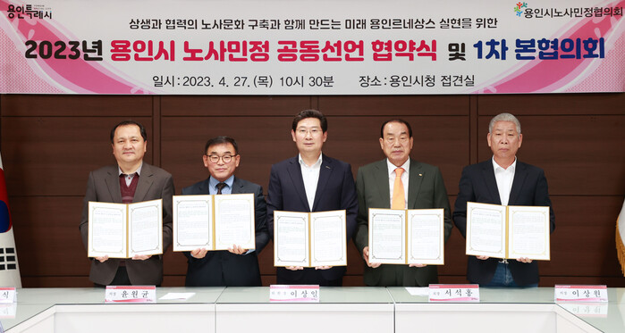 본협의회에 앞서 이상일 용인특례시장을 비롯한 5명의 노사민정 대표는 공동선언문에 서명했다.