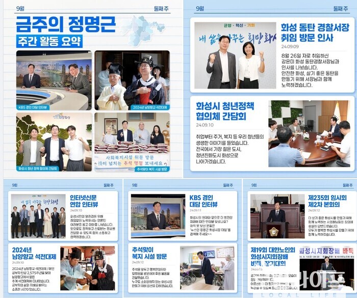 [화성=로컬라이프] 송준형 기자 = 정명근 화성시장이 자신의 페이스북에 카드뉴스 형태의 ‘금주의 정명근’을 올렸다.