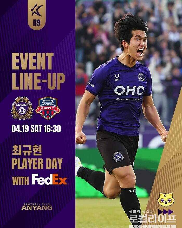 최대호 시장은 18일, 자신의 페이스북을 통해 “1호선 더비! 보라가 먼저 간다. 도시는 보라를 입는다.FC안양, 1호선 더비의 주인공이다”라고 강조했다.