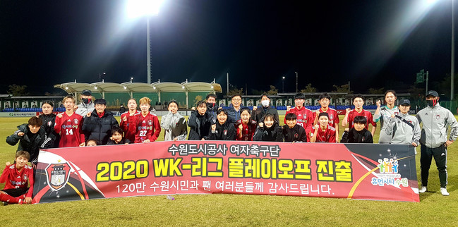 16일 수원도시공사 여자축구단에 따르면 축구단은 2018년부터 올해까지 3년 연속 WK리그 플레이오프에 진출했다. 축구단은 다음 달 9일 경주에서 한수원과 플레이오프 단판 대결을 펼친다.