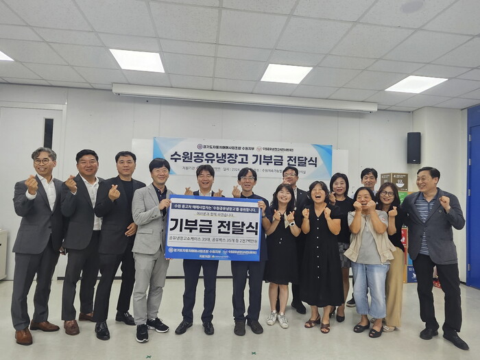 경기도자동차매매사업조합 수원지부가 “이웃과 함께 나누는 수원시 공유냉장고·공유박스 운영에 힘써달라”며 2700만원을 기부했다.