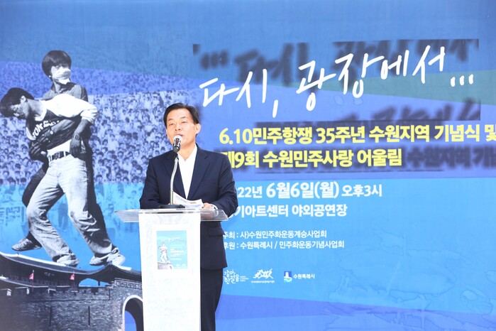 이재준 수원시장 당선인은 이날 행사에서 “민주항쟁이 일어난 지 35년이 지났지만 아직도 실질적 민주주의 완성은 요원하다”며 “실질적 민주주의를 완성하기 위해 현장에서 시민들이 느끼는 다양한 생각들이 정치와 행정에 효율적으로 반영되어야 한다”고 말했다.
