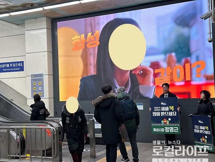 [화성=로컬라이프] 송준형 기자 = 정명근 화성시장은 새해 첫 출근일인 2일 아침, 병점역에서 시민들에게 새해 인사를 했다.