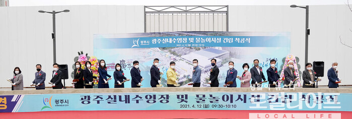 [경기 광주=로컬라이프] 송준형 기자 = 경기도 광주시 오포체육공원 내 광주실내수영장과 물놀이 시설이 2021.4.12일 착공식을 가졌다.