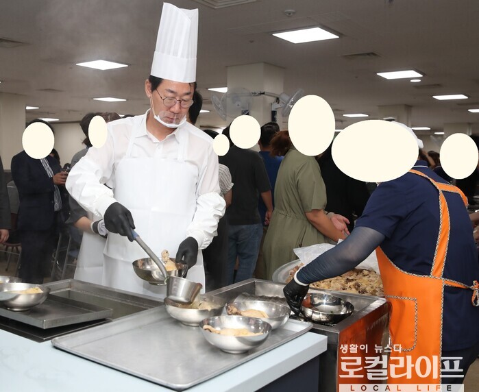 [화성=로컬라이프] 송준형 기자 = 정명근 화성시장이 중복을 맞아 직원들에게 삼계탕 배식 봉사를 했다.