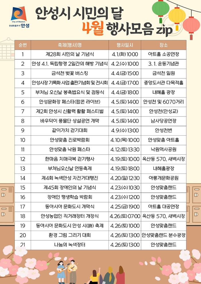 [안성=로컬라이프] 송준형 기자 = 4월은 시민의 날과 독립항쟁기념식을 비롯해 안성시에 의미있는 날이 많은 달이다.
