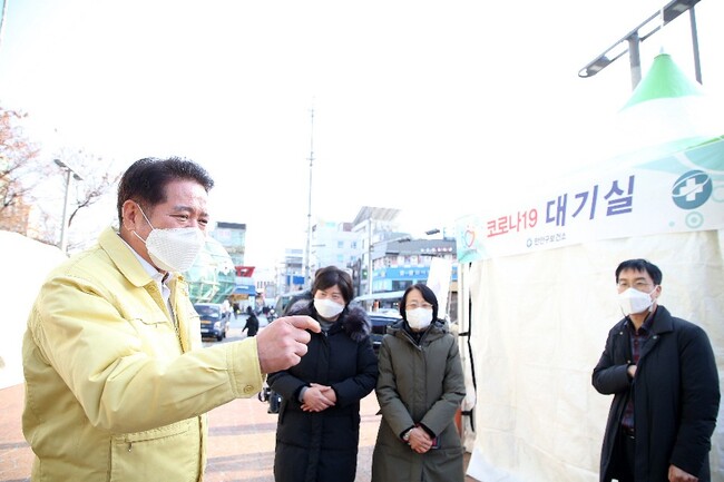최대호 시장은 11일 임시선별진료소가 설치되는 안양역 광장을 방문, 국내 확진자 천명을 넘어서 걷잡을 수 없는 상황이 되고 있다며, 무증상자를 찾아내는 것이 급선무라고 강조했다.